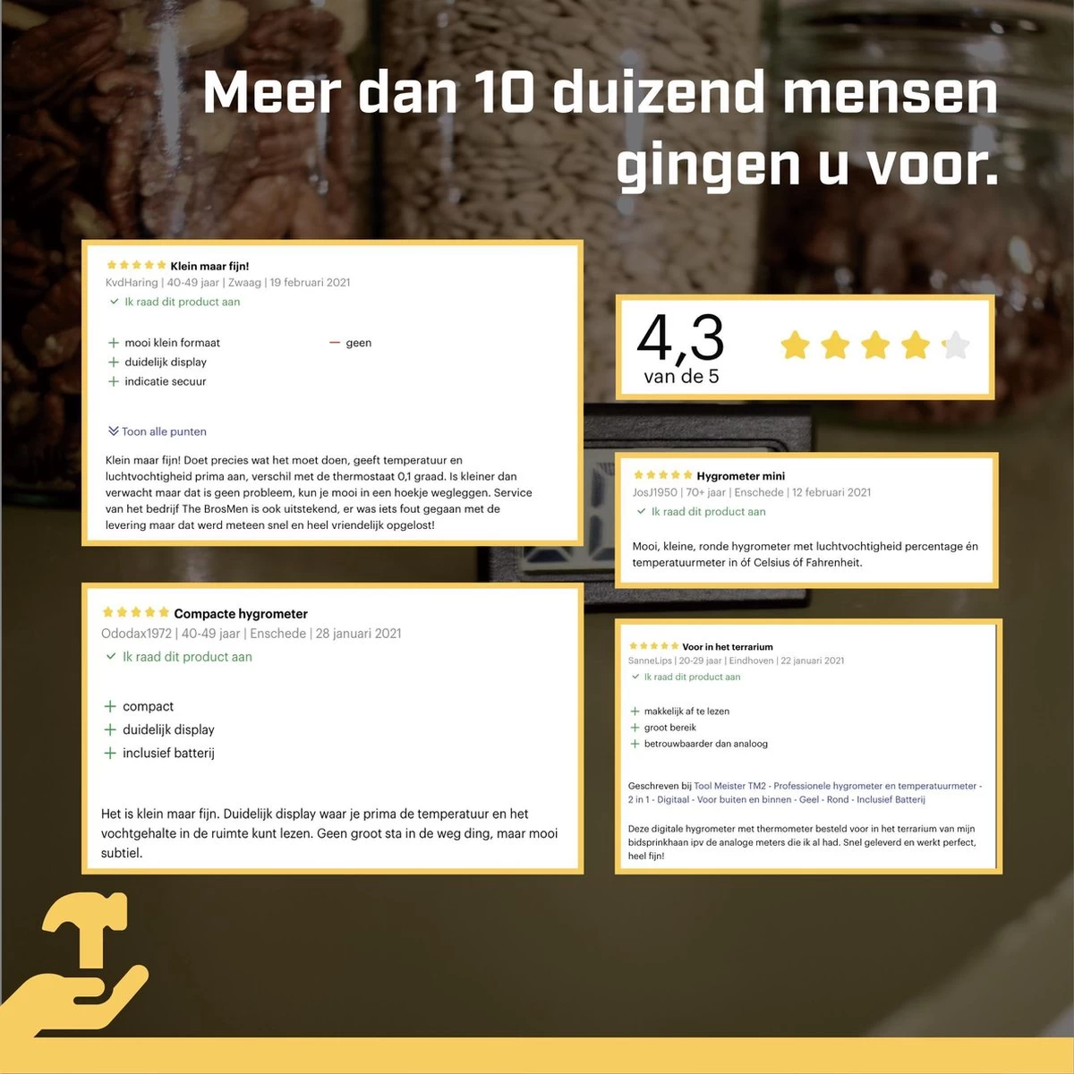 Goedkoop – Voor de prijs van een grote meter koop je wel 4-6 Tool Meister TM2 metertjes, zo kan je op meerdere plekken in huis de meters installeren.