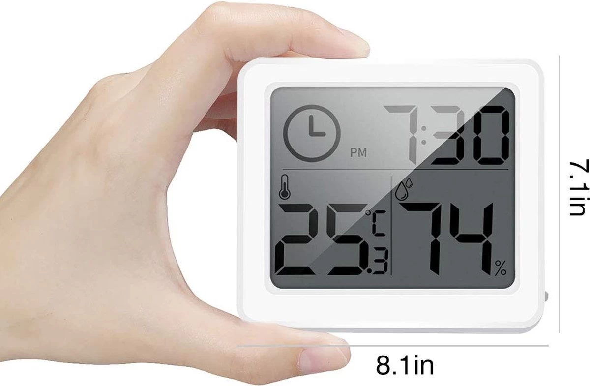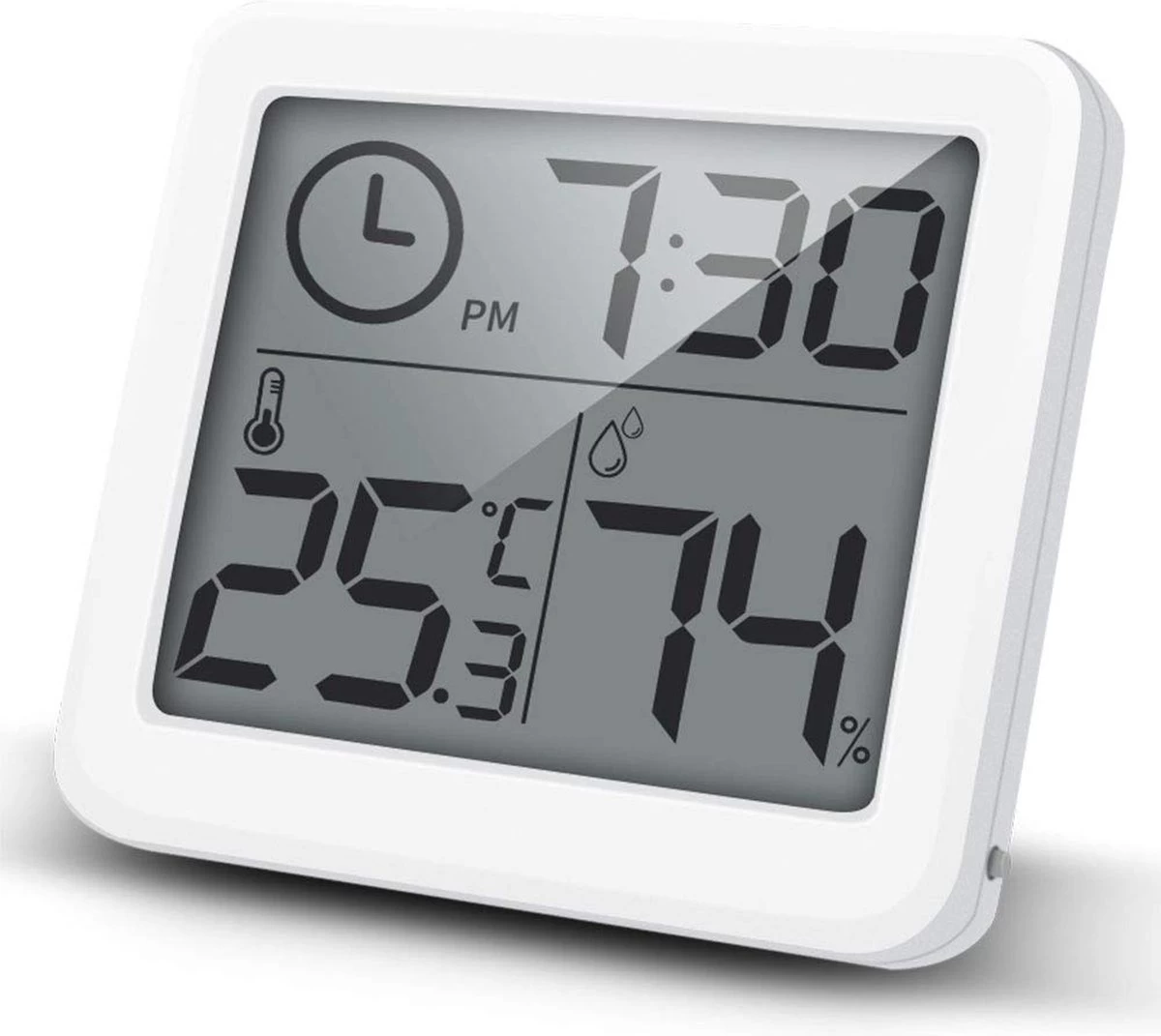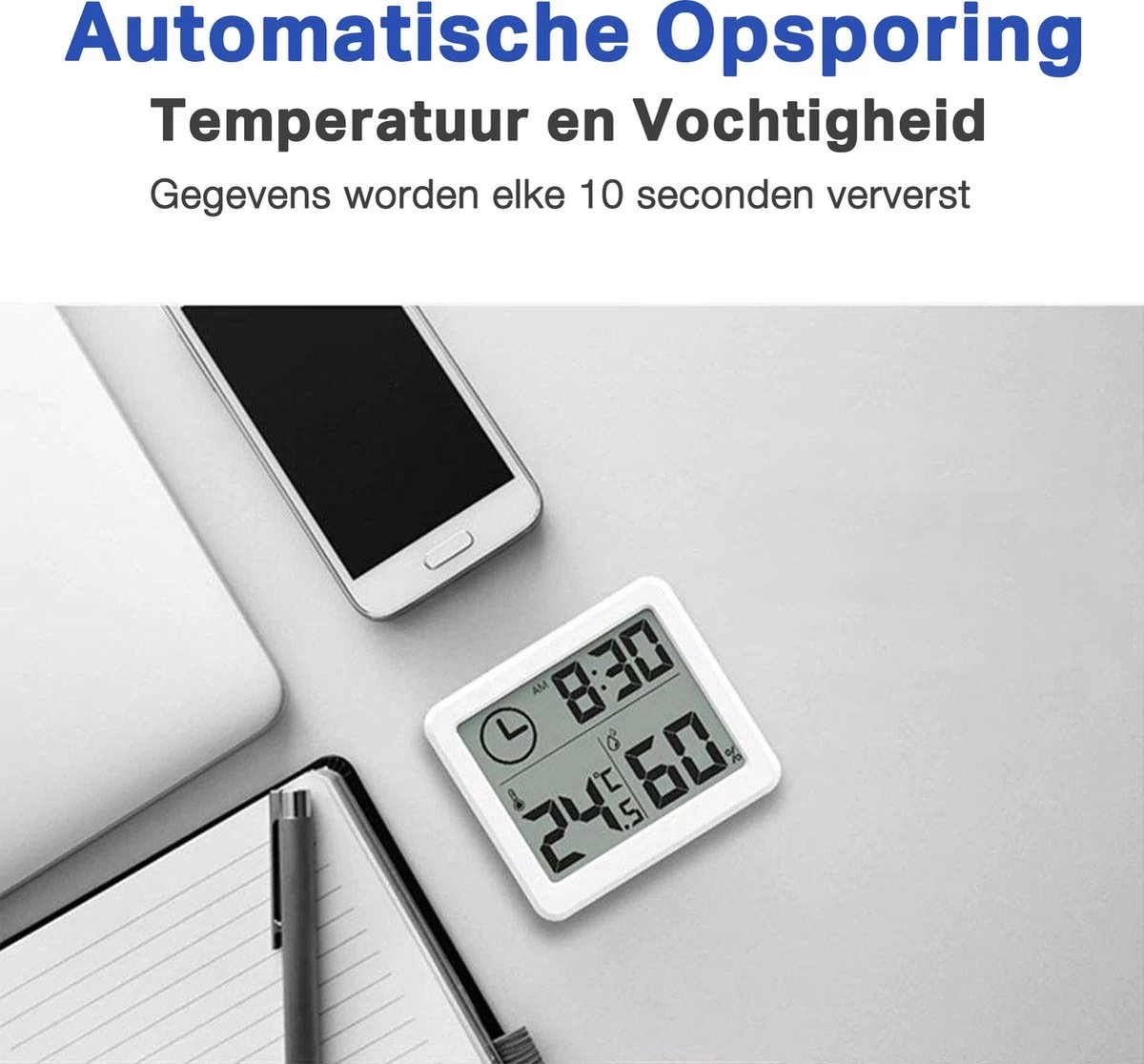 Het is een klein en compacte thermo- luchtvochtigheidsmeter met een digitaal beeldscherm. Nauwkeurige metingen met een 12 uurs tijdsweergaven in am of pm. Simpel in gebruik en ook gemakkelijk te installeren, met het knopje aan de zijkant installeer je de tijd en de datum. Daarna is het direct klaar voor gebruik. Er is een standaard bijgeleverd, maar je kan de thermo- luchtvochtigheidsmeter ook ophangen aan een spijker in de muur!