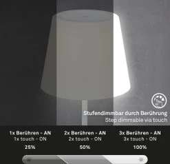 Briloner Leuchten – LED Buiten Tafellamp – Touch – 3W – IP44 – Draadloze – Batterij – Wit – Ø30cm