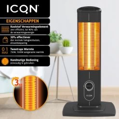 ICQN Infrarood Kachel, Terrasverwarmer, Elektrische Verwarming – 1500W – Voor Binnen En Buiten