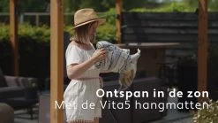 Vita5 Hangmat Met Standaard – 2 Persoons – Incl. Bekerhouder – 205kg Draaggewicht – Beige/Wit