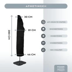 Parasolhoes Voor Zweefparasol–Waterdicht-met Rits En Stok-Superieure Kwaliteit-280cm X 81cm
