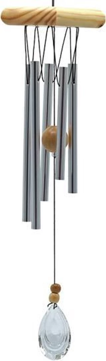 | Windorgel met vijf staafjes – hout met kristallen windvanger Dit prachtige windorgel heeft vijf metalen staafjes, een houten klopper en een druppelvormige kristallen windvanger. Het bovenstuk van de windvanger is vierkant. Een pareltje voor het oog en oor! -Windorgel vierkant vijf staafjes en kristal windvanger – 8×48 cm – Maat: S