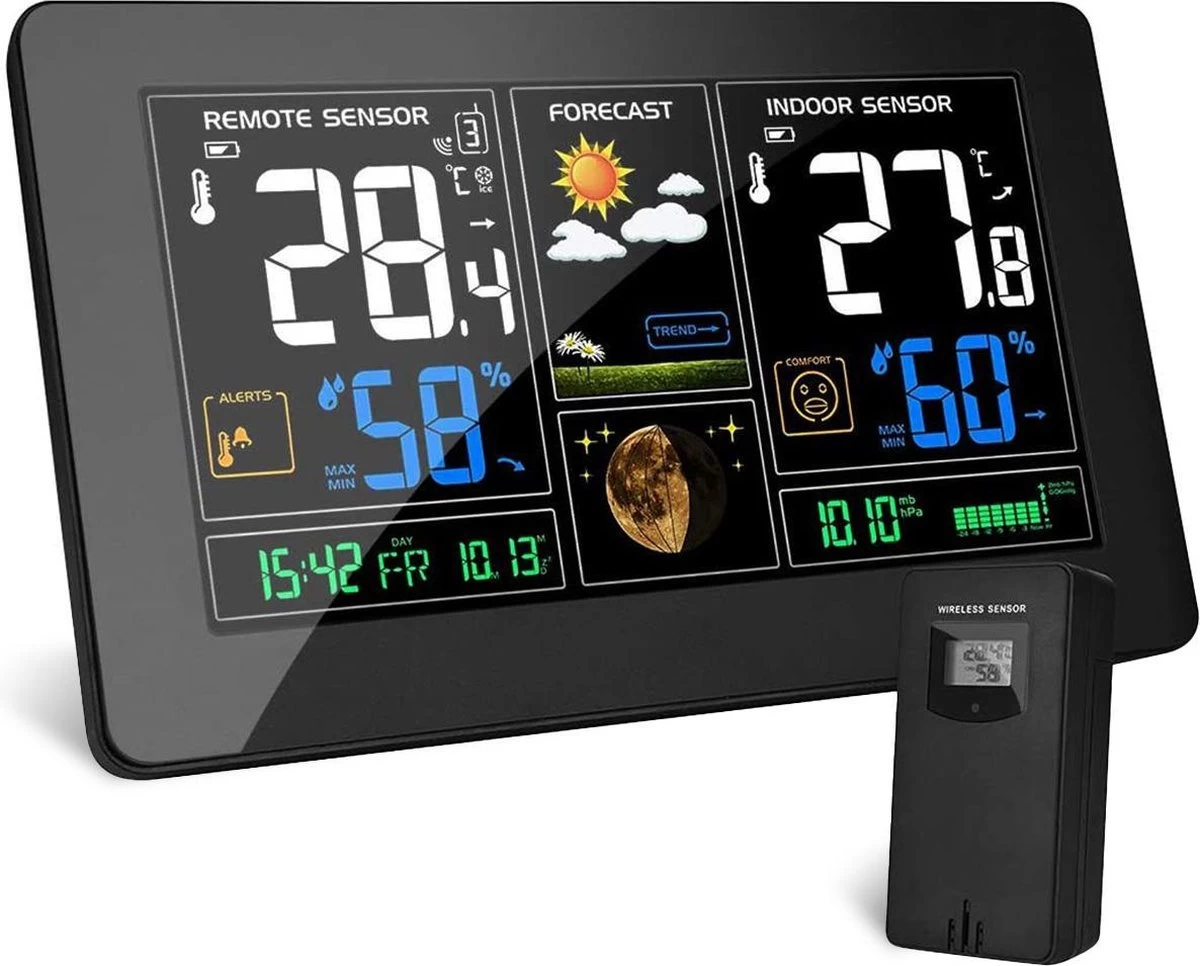 Met dit weerstation van YONO ben je altijd op de hoogte van het actuele weer. De buitensensor, hygrometer en barometer geeft een nauwkeurige en betrouwbare meting van de binnen – en buiten temperatuur, de luchtvochtigheid en luchtdruk. Dankzij YONO’s gebruiksvriendelijke weerstation ben je in één oogopslag op de hoogte van het klimaat zowel binnen als buiten.